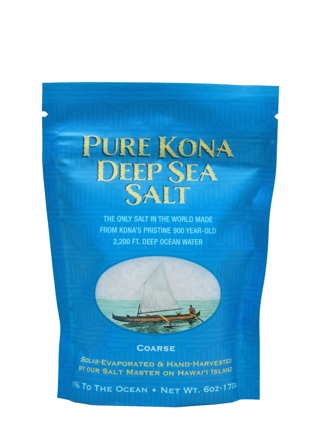100% Pure Hawaiian Salt and the only salt in the world made from the depths of 2,200 feet below the ocean surface. Kona Sea Salt has a purity you can taste. Mineral-rich deep seawater is dried naturally under the Hawaiian sun producing an exquisite gourmet finishing salt and hand harvested by our Chief Salt Maker. Like our Medium Grind salt, it contains less sodium than ordinary table salt.